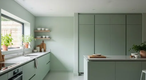 In a true colour-drenched kitchen, the walls and sometimes even the ceiling are painted to match or complement the cabinetry. This removes visual breaks and gives the kitchen a strong identity—ideal for open-plan homes common across Northampton and Northamptonshire.