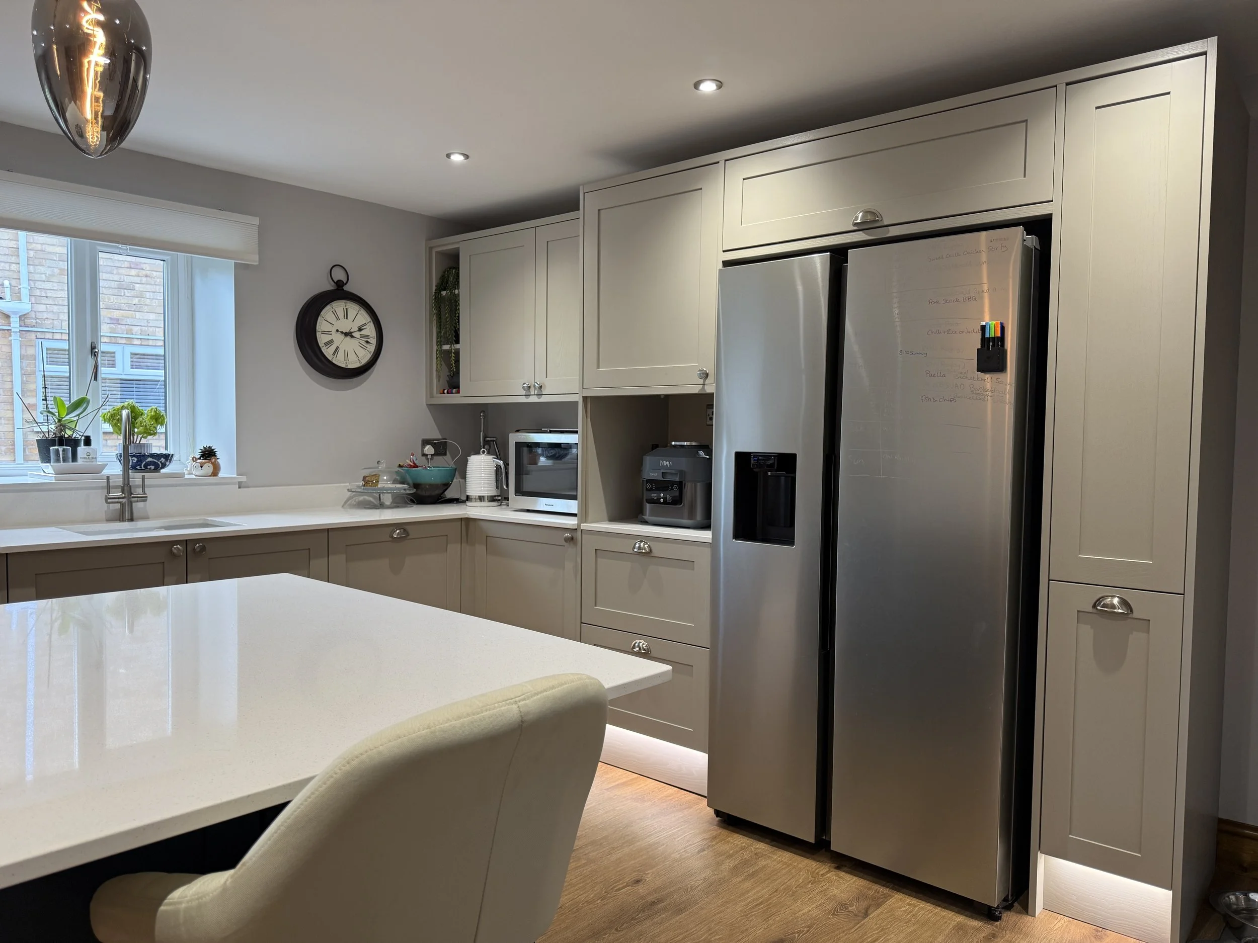 Welcome to the stunning Aldana shaker kitchen we had the pleasure of creating for the Fletcher family. Their vision was a space that felt both timeless and contemporary, and the final result is a beautiful reflection of their style.