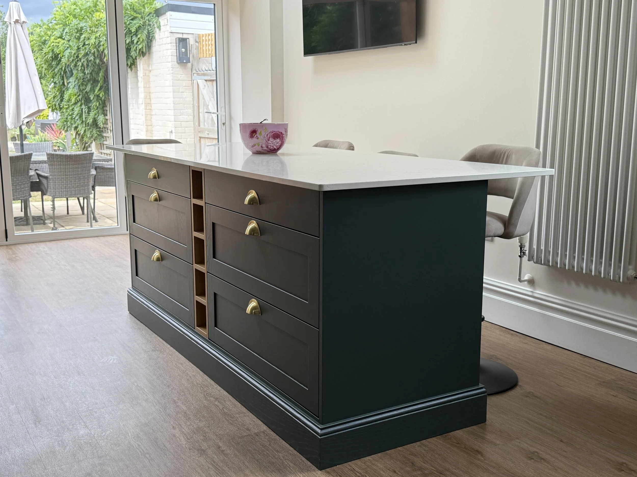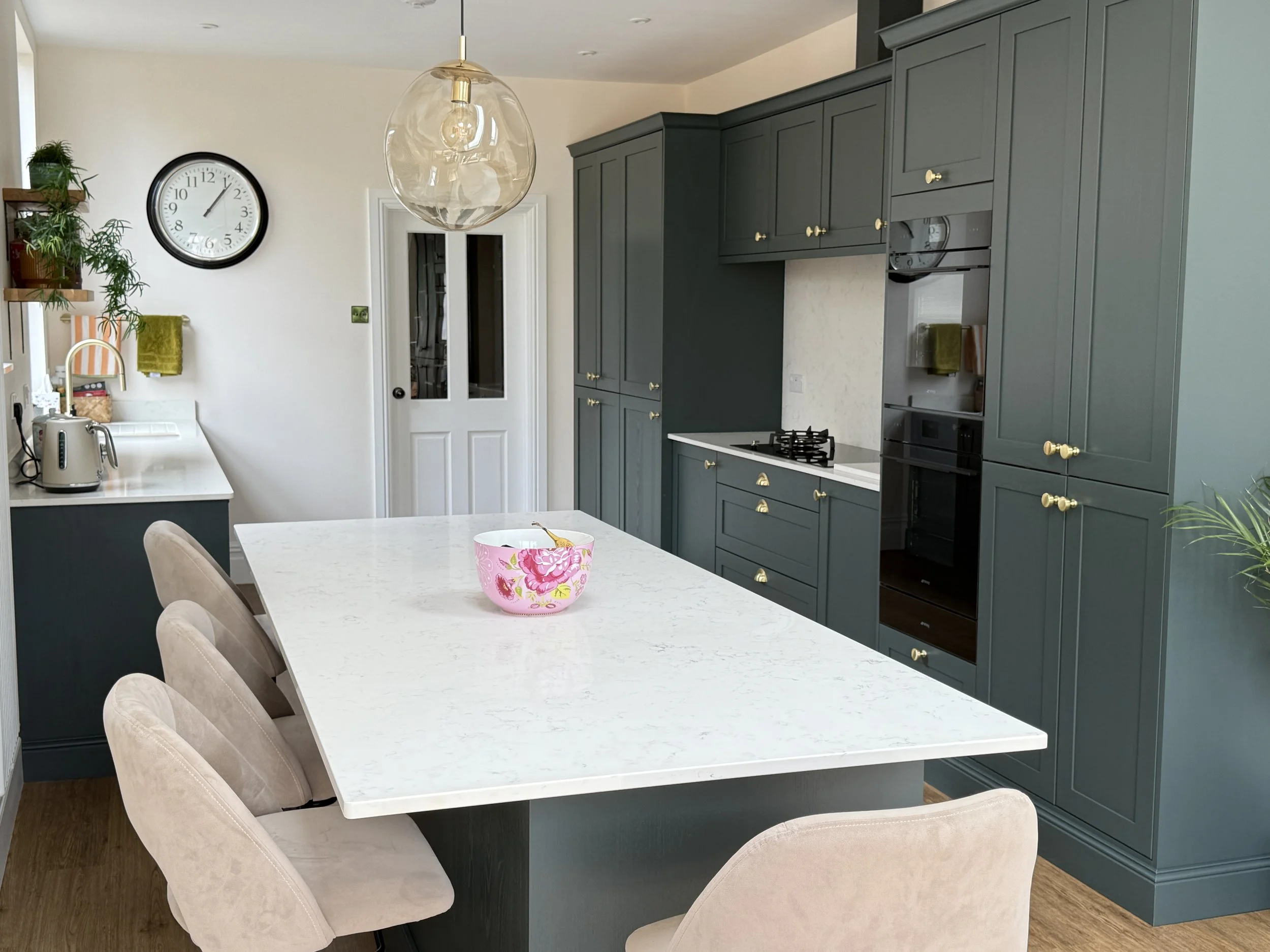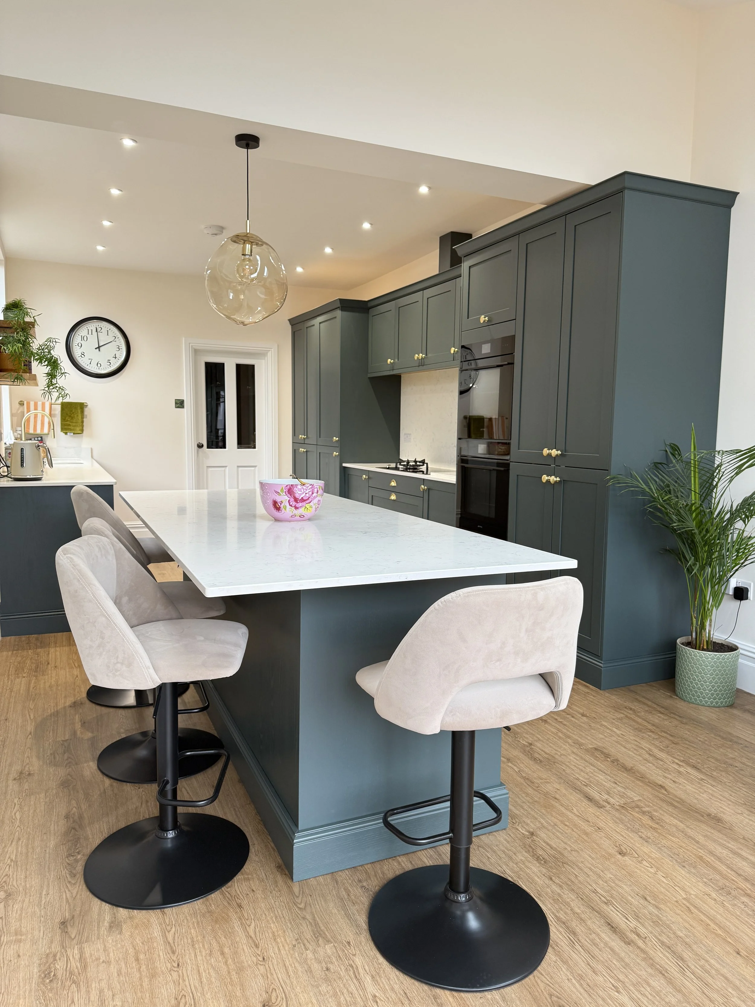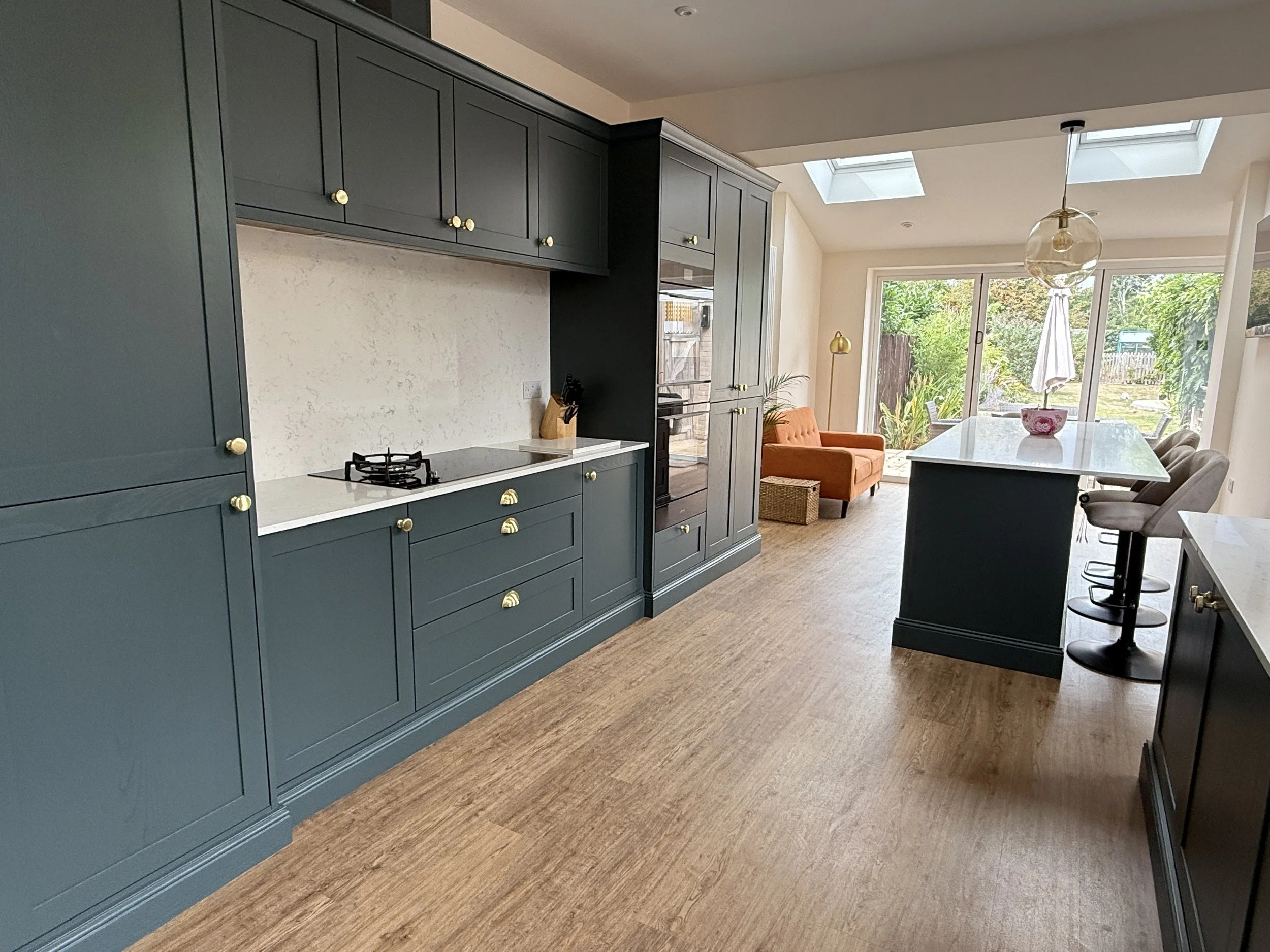 Welcome to the Mount family's brand-new kitchen diner! Our skilled design team dedicated their creativity and expertise to craft a space that is not only visually stunning but also highly practical for everyday living. Through careful planning and meticulous attention to detail, every element of this extensive kitchen renovation, including the extension build work, was thoughtfully selected to perfectly suit the unique needs of this lovely family. Working closely to ensure that the kitchen and island complemented the traditional style of the property, from the elegant countertops to the stylish cabinetry, every aspect was designed with the family's comfort and functionality in mind. Our expert build team worked tirelessly to bring this vision to life, making sure that every corner was constructed and installed with absolute precision and care.