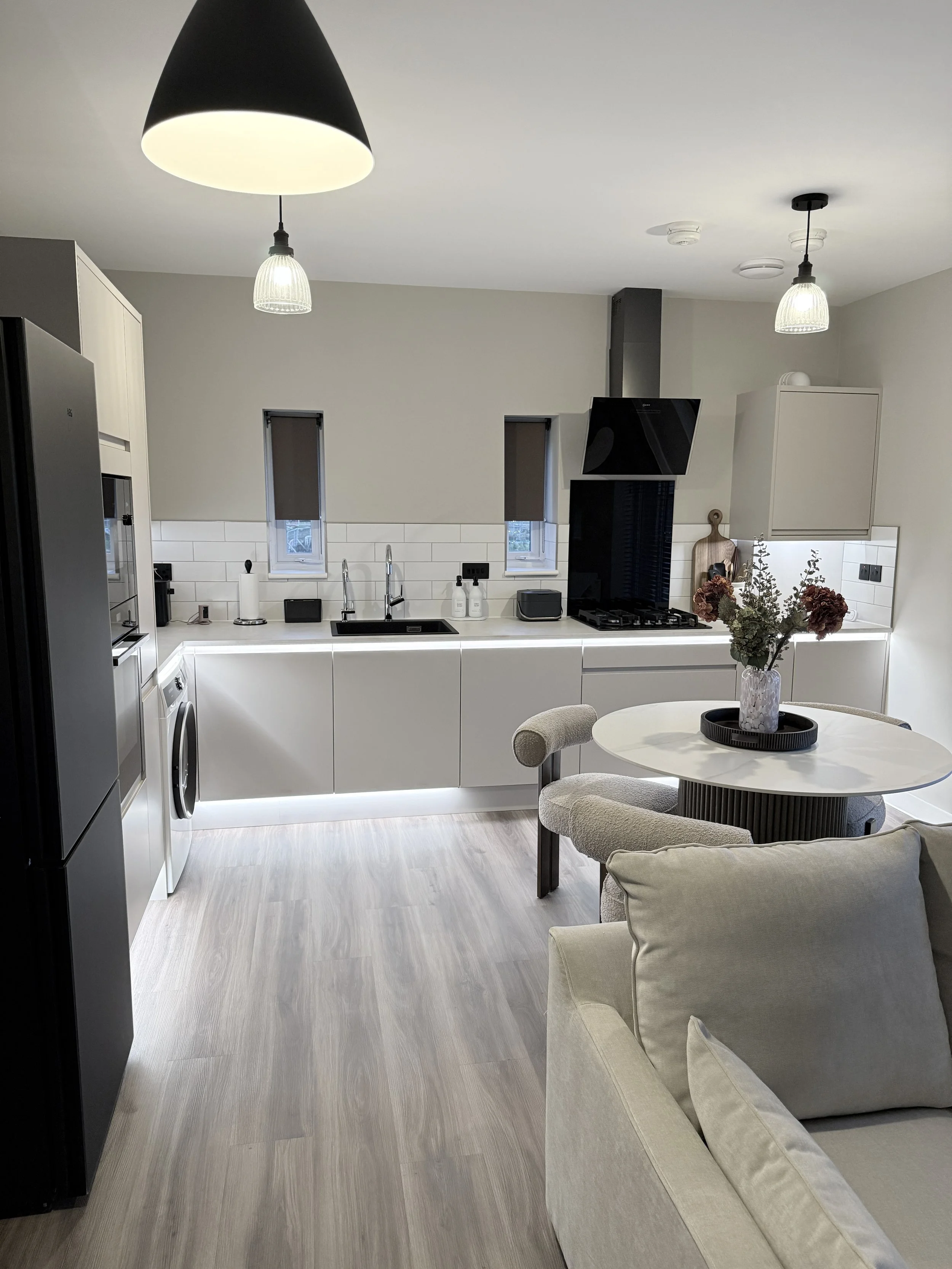 This was the exact situation faced by the Shakoor family, long-standing, valued customers of Saturn Kitchens. Immediately after their daughter completed on her brand-new apartment in Duston, Northampton, they recognized the opportunity for a significant upgrade. The basic builder-grade kitchen simply didn't match the quality they expected for her new home.